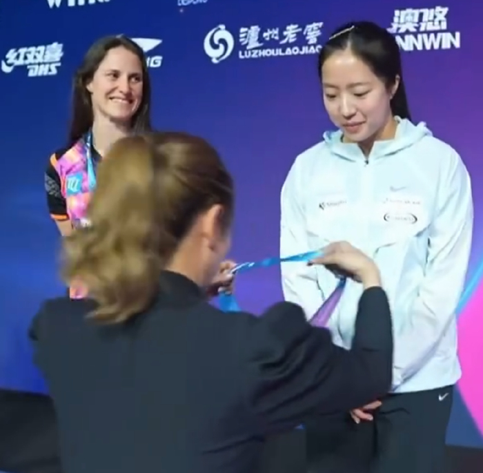 申裕斌与沙宾-温特成为2026年澳门世界杯的铜牌选手,在2024年世界杯改制后进入四强就能站在领奖台,这让申裕斌成为韩乒历史首位在世界杯舞台拿到奖牌的选手,21岁的她书写了全新的韩乒历史。(为申裕斌戴上奖牌的是刘诗雯)21岁的申裕斌在单打项目上已经有不少的斩获:2021年多哈银牌、2022年杭州亚运会铜牌、2026年澳门世界杯铜牌。她已经是名副其实的韩乒一姐...